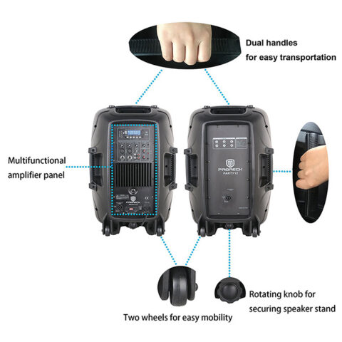- 150-Watt RMS,1000 Watts Peak; 12″ Woofer and Compression Driver with 1.35″ Titanium Diaphragm; Digital LCD Screen; Master volume controls, Mic, Line, Tremble, Bass volume controls