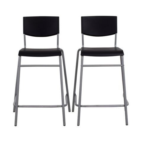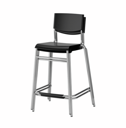 - This barstool is made of a metal frame with a plastic backrest and seat.