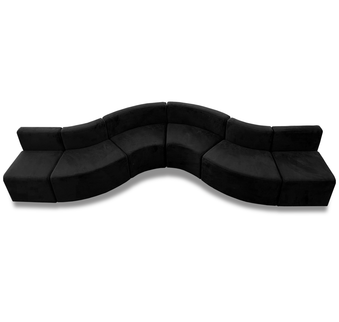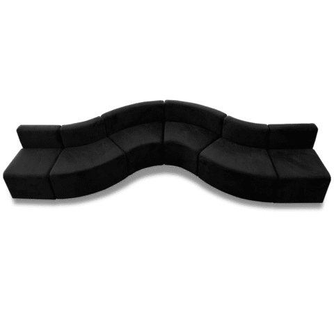 These sectionals are perfect for VIP guests to socialize and party in style. The Black Serpentine Modular Sectional Sofa can seat 8-10 guests can be used for indoor events.