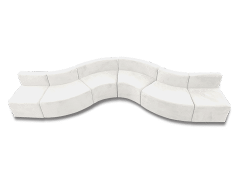 The Bright Ivory White Serpentine Modular Sectional Sofa rental is a perfectly cozy choice for your guests to unwind on and enjoy event festivities. This velvet like sectional create a comfortable space that will energize your guests to mingle and collaborate with others.