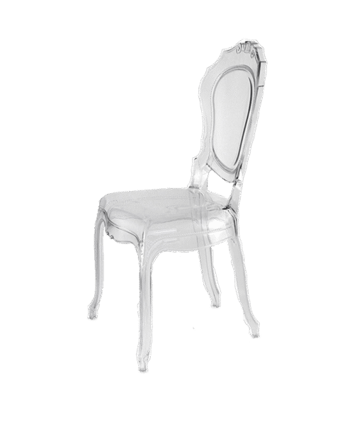 An extraordinary Dining Chair, Elegantly shaped and ornately designed. The Ghost Elle Dining Seat features an elegant baroque frame and a neutral space-saving appearance.