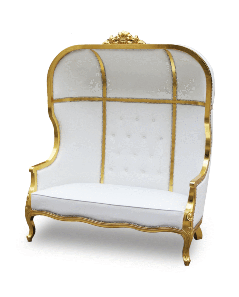 We offer this particular seat in silver as well. Also called a sweetheart sofa, since this option seats the Atlanta bride and groom elegantly. Add our other Luxe Lounge Line Furniture Rentals to create an unforgettable VIP section or comfy social gathering area. See this sofa with gold trim.