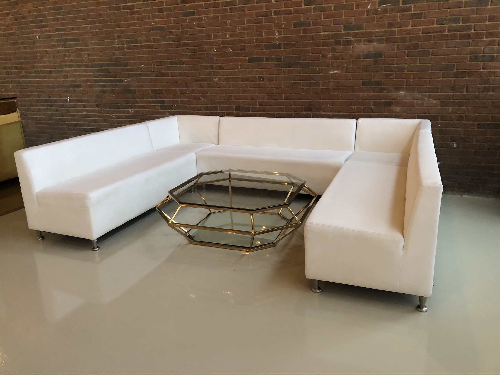 Home / Shop / PARTY RENTALS / Chairs / White Luxe Lounge Line Sectional Sofa