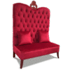 The High back sofa is often used as featured seating for special events. The Red Wine Luxe Line High Back Sofa brings an elegant flair to your event and highlights the guest(s) of honor. The High Back Sofa is often paired with our half-round table and our tablecloth rentals.