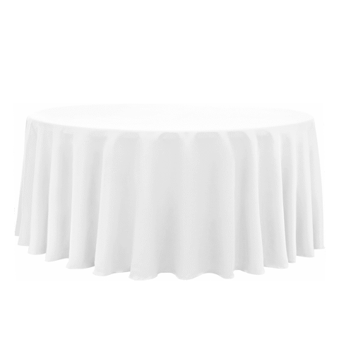 120″ Round White Linen in Polyester is suitable for 60″ roundtables.