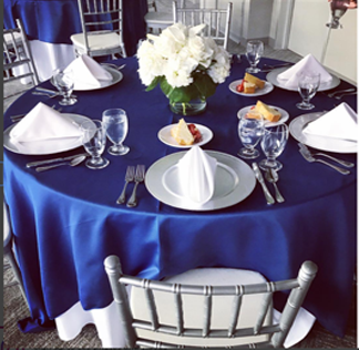 Choose overlays for weddings, trade shows, anniversary events, or even your home! Made from 100% spun polyester, our overlays are a durable option. Drape these overlays over our 60″ round table or 72″ rounds. These blue satin overlays are extremely versatile and can be dressed up for an ultimate glam event, dressed down for a shabby-chic rustic wedding, and can even be used as a clean and modern look for a minimalist event!