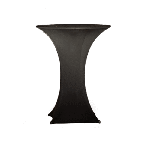 Dress up your party, trade show, or wedding with this spandex black tablecloth rental linen available in almost any color (upon request). This linen is meant to be used with our highboy tables that have a 4 prong “star” base, as pictured.
