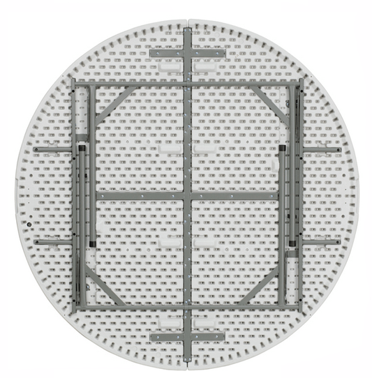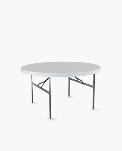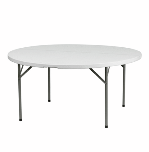This size round table rental isn’t just perfect for dining. Consider choosing this flexible table for a workspace, display table, or food table This banquet folding table features a white granite-like tabletop and legs that easily fold-out making the setup and break-down process quick and painless!