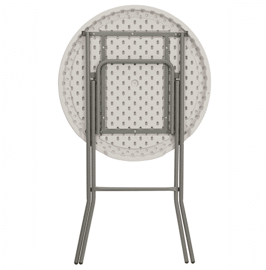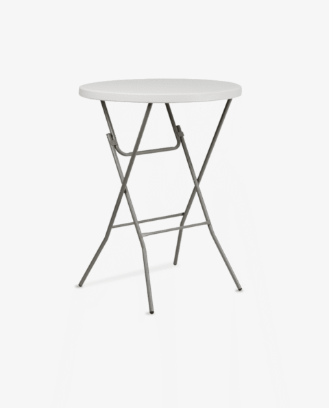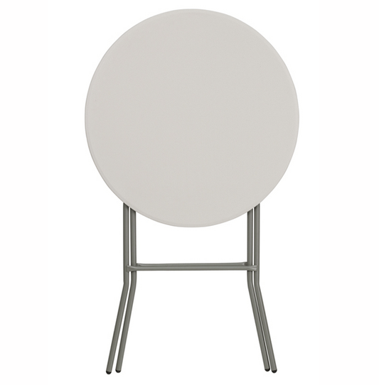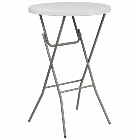 Highboy tables are easy to transport and breakdown. Features a granite white top and gray folding post.