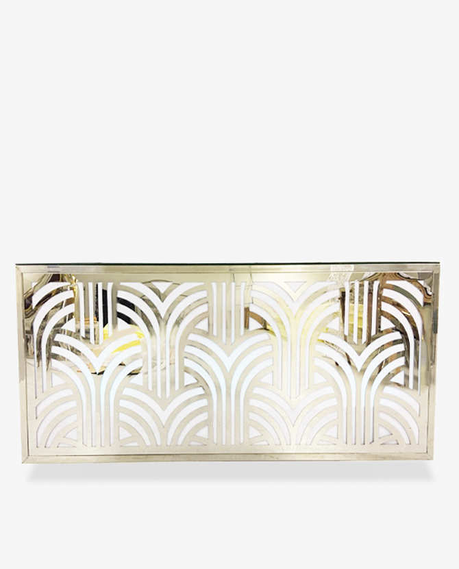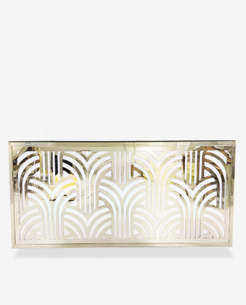 This stunning event bar offers quality material and workmanship ensuring a beautiful high-end focal piece. Featuring a radiant metallic finish with diamond-like designs this bar rental will give any room sparkle and glamour.