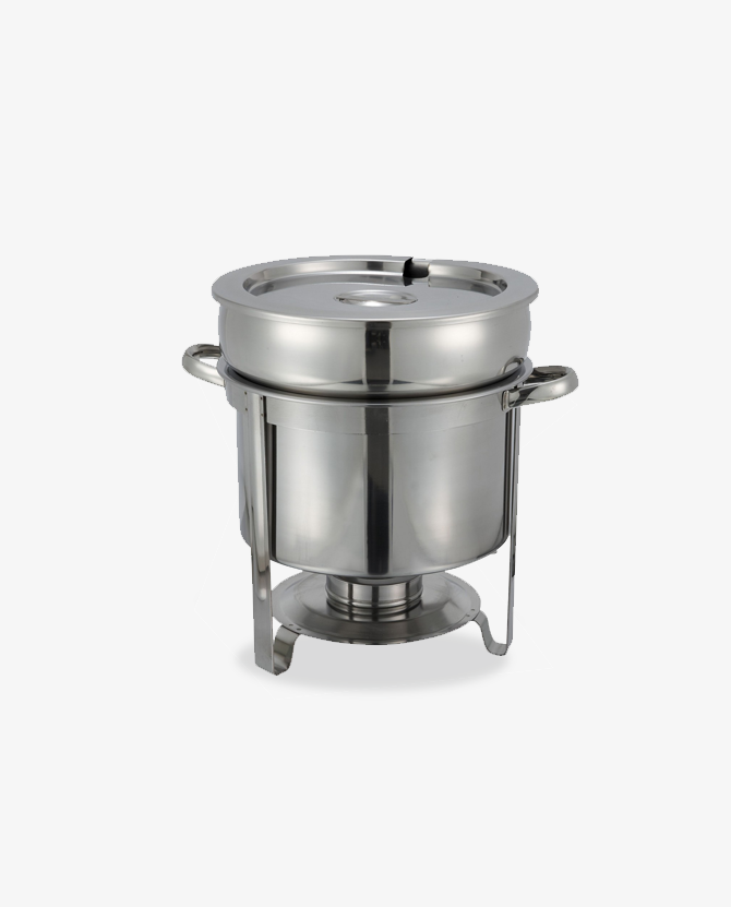 A must-have at any catered event, the Stainless Steel Soup & Sauce Warmer/ Chafer holds up to 11 Qts efficiently. This chafer keeps soup and sauces at the perfect temperature. Made from stainless steel, this soup warmer is rust resistant and will withstand high temperatures while maintaining its shape.